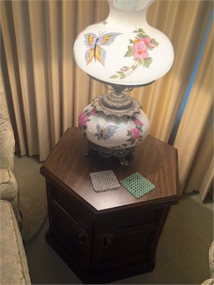 VINTAGE Electric Hurricane Lamps. Butterflys & florals. Beautiful! VGC. Both upper & lower lamps light. Large globes. $400 each; BO. No Texts! 309-688-8963 leave message. Peoria, IL.