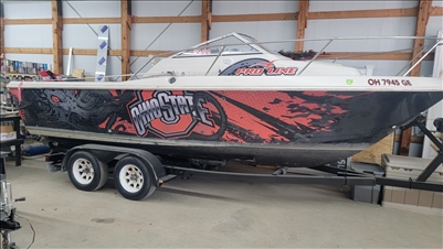 PROLINE 1995 Model 2200 22 Walk Around. Custom OSU wrap. Lots of improvements. Great Lake Erie fishing boat! Mercury V175 & Load Rite 21T3600 trailer. Canvas top. Lots of extras go with. $12,000; BO.